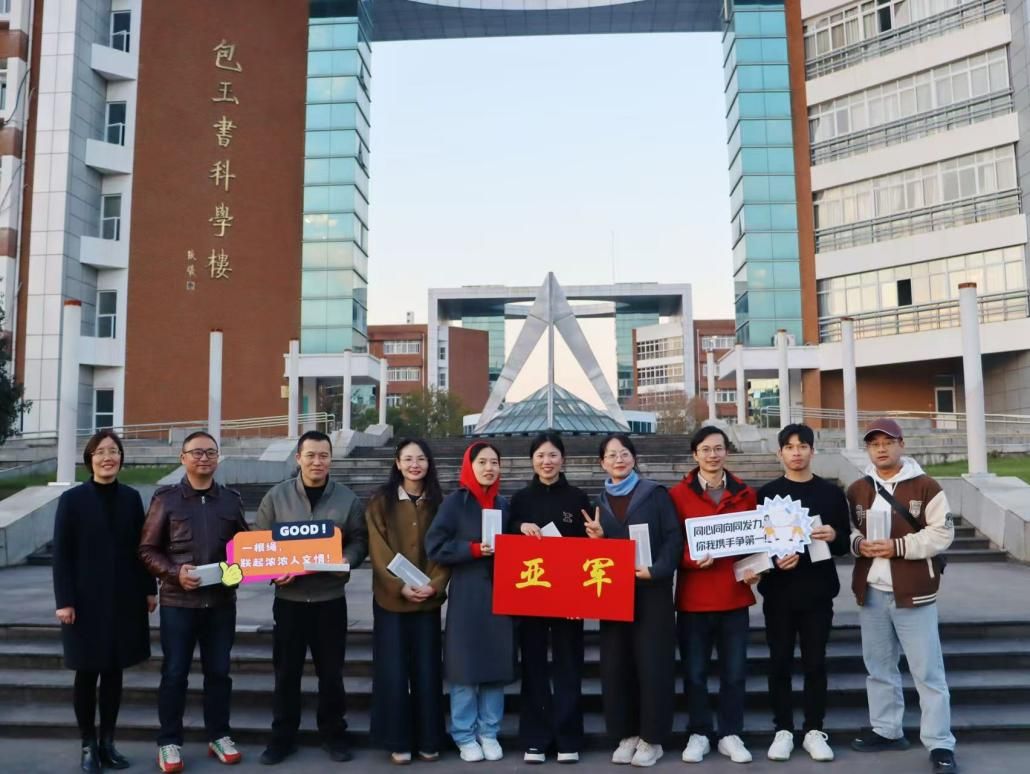师生拔河比赛在包玉书科学楼10号楼南门空地举行。